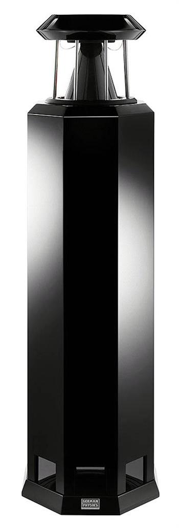 The HRS-130 Loudspeaker uses a single carbon fiber German Physiks DDD driver mounted on top of a slim, octagonal, floor standing cabinet, with a downward firing 10-inch woofer set in its base